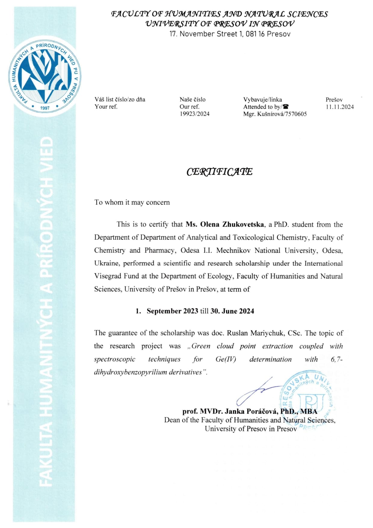кандидат хімічних наук, доцент, Scopus Author ID 7003514762