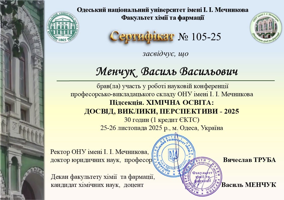 Менчук Василь Васильович – кандидат хімічних наук, професор