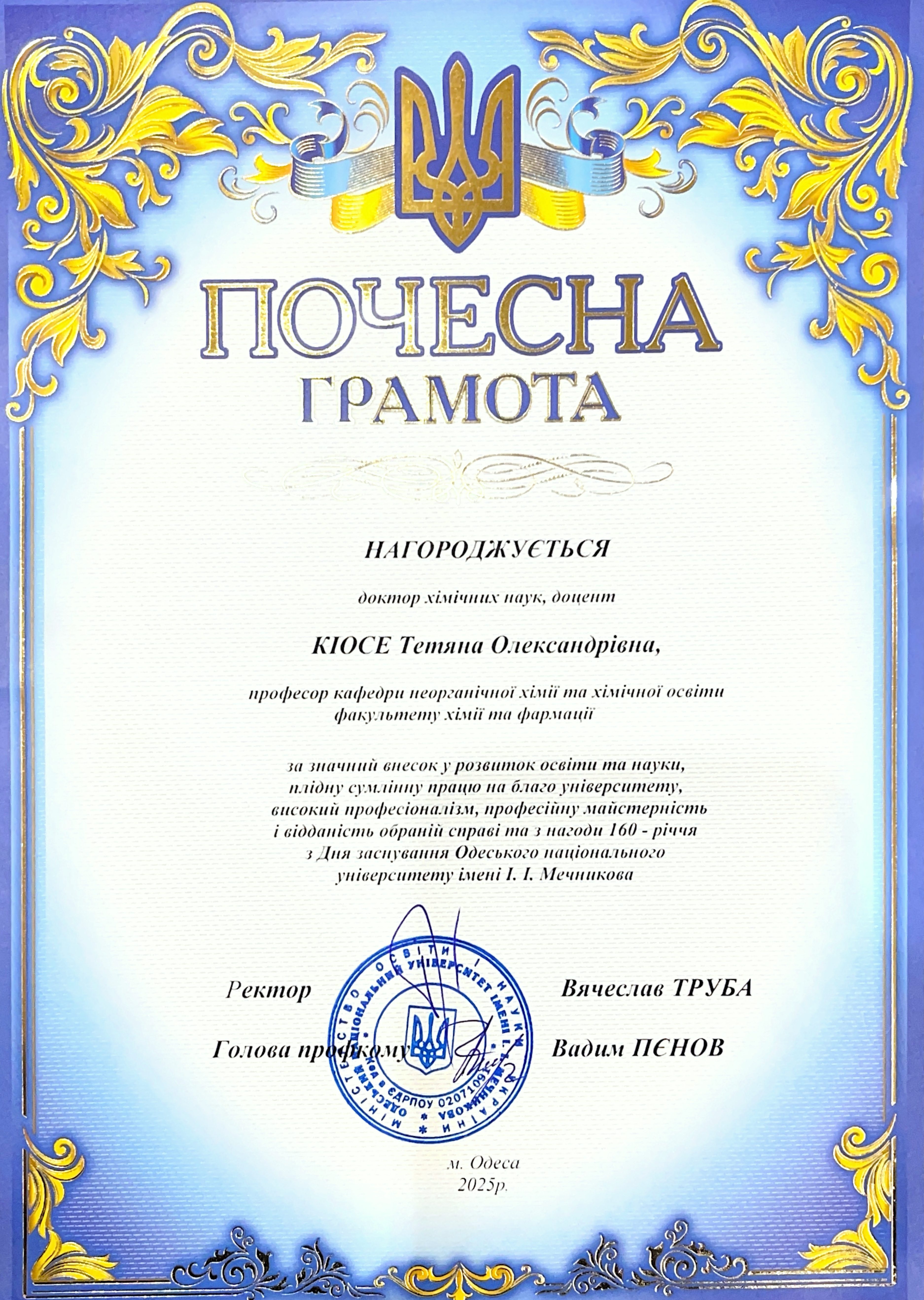 Кіосе Тетяна Олександрівна – професорка, доктор хімічних наук