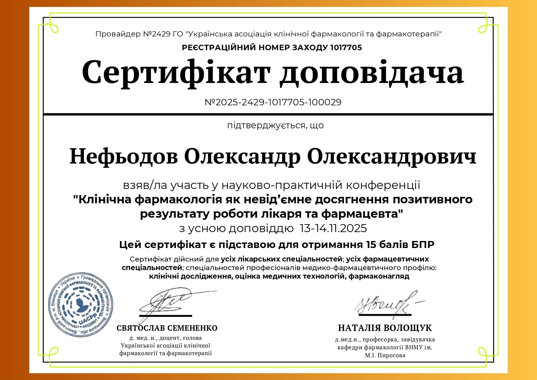 Нефьодов Олександр Олександрович – доктор медичних наук, завідувач кафедри